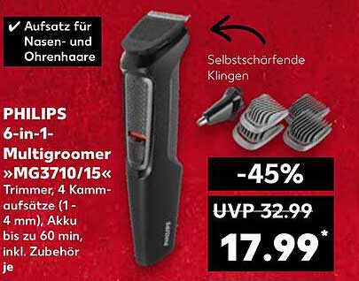 Sehen Sie sich das Philips 6-In-1 Multigroomer »Mg3710/15« Angebot bei Kaufland an! Dieses fantastische Angebot ist jetzt im neuesten Kaufland Prospekt verfügbar. Nutzen Sie diese Chance und sparen Sie viel bei Ihrem Einkauf.