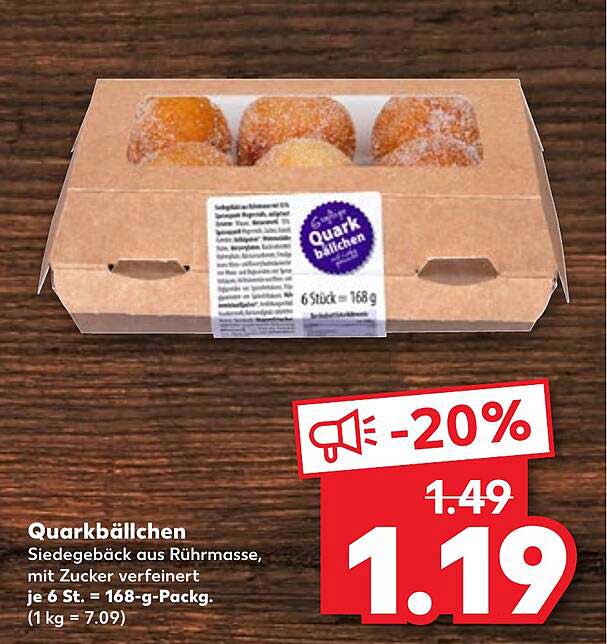 Der reguläre Preis für diese Quarkbällchen liegt bei 1,49 €, doch im aktuellen Angebot zahlen Sie nur 1,19 €. Das bedeutet eine Ersparnis von 20%! Nutzen Sie diese Gelegenheit, um sich und Ihre Liebsten mit einem süßen Snack zu verwöhnen.