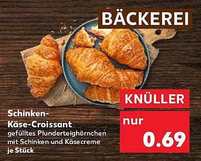 Sehen Sie sich jetzt das Schinken-Käse-Croissant gefülltes Plunderteighörnchen mit Schinken und Käsecreme je Stück Angebot im Kaufland Prospekt an. Dieses Angebot ist gültig von 09.04.2025 bis 16.04.2025.