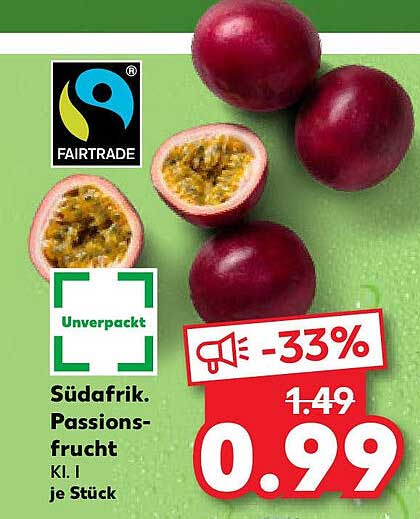 Sehen Sie sich jetzt das Südafrikanische Passionsfrucht - frisch und lecker! Angebot im Kaufland Prospekt an. Dieses Angebot ist gültig von 28.09.2025 bis 01.10.2025.