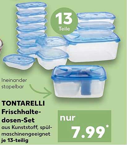 Sehen Sie sich das Tontarelli Frischhalte-Dosen-Set Angebot bei Kaufland an! Dieses fantastische Angebot ist jetzt im neuesten Kaufland Prospekt verfügbar. Nutzen Sie diese Chance und sparen Sie viel bei Ihrem Einkauf.