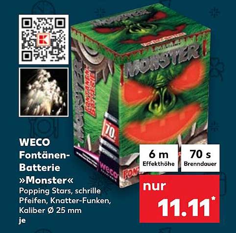 Sehen Sie sich jetzt das WECO Fontänen-Batterie »Monster« Angebot im Kaufland Prospekt an. Dieses Angebot ist gültig von 19.12.2024 bis 31.12.2024.