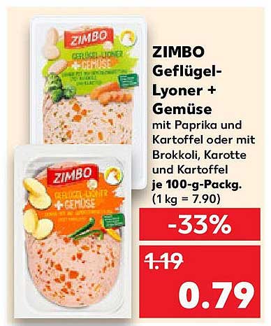 Sehen Sie sich jetzt das ZIMBO Geflügel-Lyoner + Gemüse mit Paprika und Kartoffel oder mit Brokkoli, Karotte und Kartoffel je 100-g-Pack. Angebot im Kaufland Prospekt an. Dieses Angebot ist gültig von 09.10.2025 bis 15.10.2025.