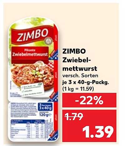 Sehen Sie sich jetzt das ZIMBO Zwiebelmettwurst 3 x 40-g-Packung Angebot im Kaufland Prospekt an. Dieses Angebot ist gültig von 11.09.2025 bis 17.09.2025.