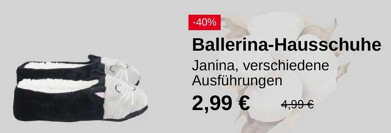 Sehen Sie sich das Ballerina-Hausschuhe Angebot bei KiK an! Dieses fantastische Angebot ist jetzt im neuesten KiK Prospekt verfügbar. Nutzen Sie diese Chance und sparen Sie viel bei Ihrem Einkauf.