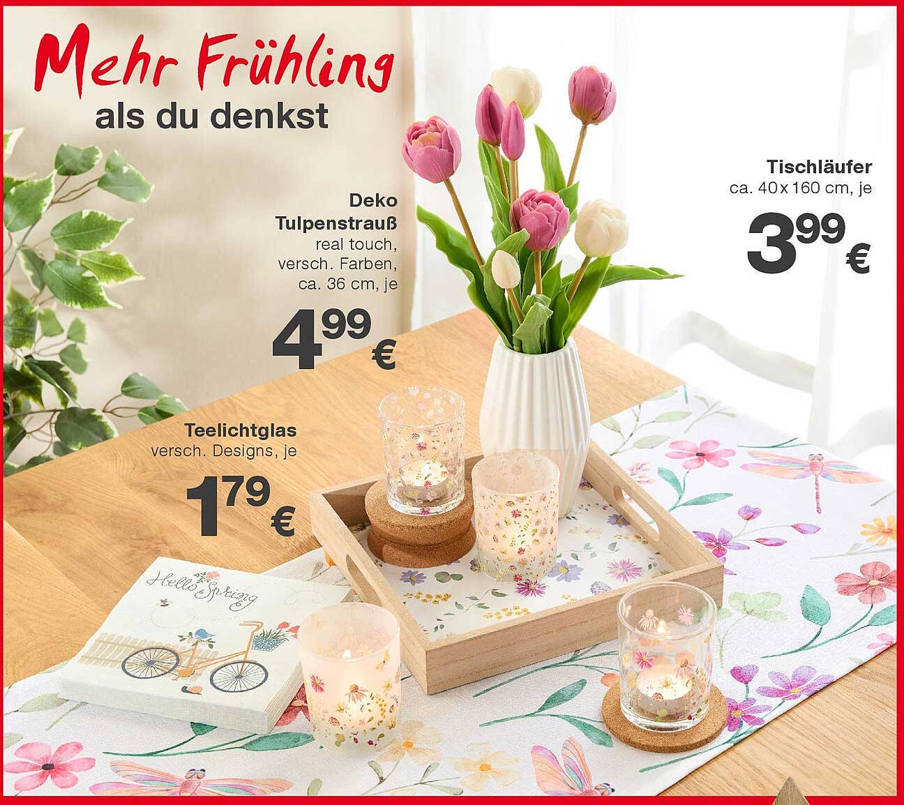 Sehen Sie sich das Deko Tulpenstrauß Angebot bei KiK an! Dieses fantastische Angebot ist jetzt im neuesten KiK Prospekt verfügbar. Nutzen Sie diese Chance und sparen Sie viel bei Ihrem Einkauf.