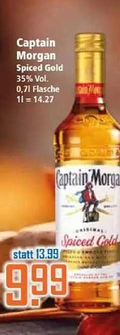 Aktuell ist die 0,7-l-Flasche Captain Morgan Spiced Gold für nur 9,99 € erhältlich, während der vorherige Preis bei 13,99 € lag. Das bedeutet eine Ersparnis von 4,00 € – eine echte Gelegenheit, die man sich nicht entgehen lassen sollte!
