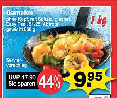 Der aktuelle Preis von nur 9,95 € ist ein echtes Schnäppchen, denn der UVP liegt bei 17,90 €, was einer Ersparnis von 44 % entspricht. Nutzen Sie diese Gelegenheit, um hochwertige Garnelen zu einem unschlagbaren Preis zu erwerben. Solche Angebote sind selten und bieten Ihnen die Chance, Qualität zu einem Bruchteil des Preises zu genießen.
