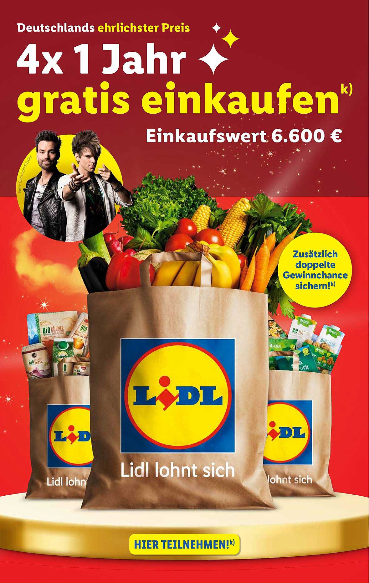Sehen Sie sich das 4X 1 Jahr Gratis Einkaufen Angebot bei Lidl an! Dieses fantastische Angebot ist jetzt im neuesten Lidl Prospekt verfügbar. Nutzen Sie diese Chance und sparen Sie viel bei Ihrem Einkauf.