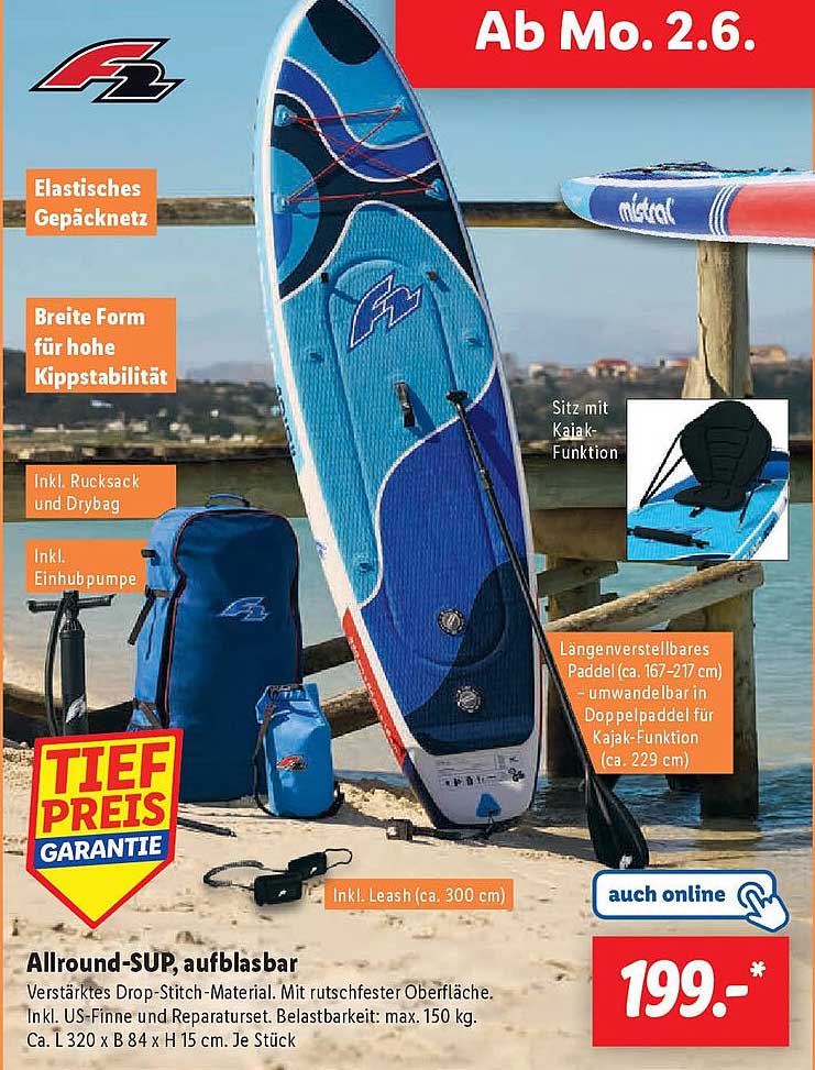 Der Einführungspreis für das Allround-SUP beträgt nur 199,- €. Im Vergleich zu anderen Modellen auf dem Markt, die oft deutlich teurer sind, können Sie hier erheblich sparen und gleichzeitig ein qualitativ hochwertiges Produkt erwerben. Nutzen Sie die Gelegenheit, sich dieses fantastische Angebot zu sichern!