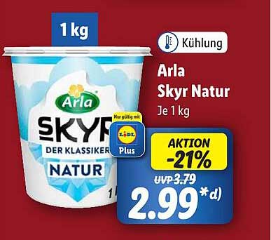 Sehen Sie sich jetzt das Arla Skyr Natur Angebot im Lidl Prospekt an. Dieses Angebot ist gültig von 30.12.2024 bis 04.01.2025.