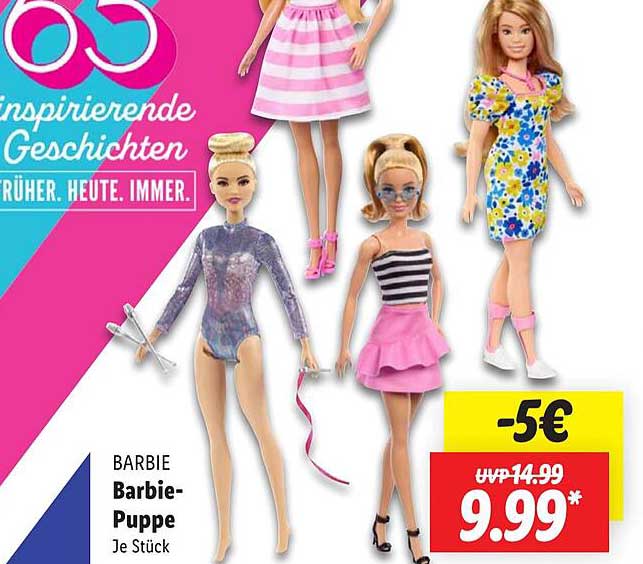 Sehen Sie sich das Barbie Barbie-Puppe Angebot bei Lidl an! Dieses fantastische Angebot ist jetzt im neuesten Lidl Prospekt verfügbar. Nutzen Sie diese Chance und sparen Sie viel bei Ihrem Einkauf.