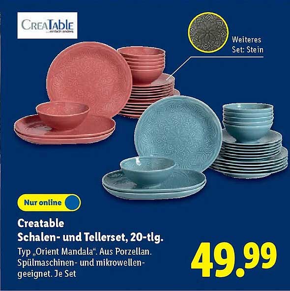 Sehen Sie sich jetzt das Creatable Schalen- und Tellerset, 20-tlg. Angebot im Lidl Prospekt an. Dieses Angebot ist gültig von 03.11.2025 bis 08.11.2025.