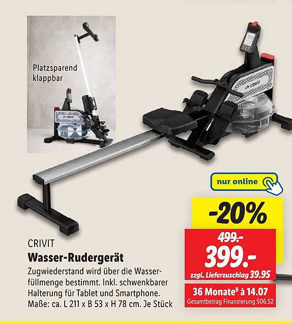 Entdecken Sie das großartige Crivit Wasser-Rudergerät Angebot im neuesten Lidl Prospekt. Neben diesem Angebot finden Sie noch viele weitere attraktive Rabatte. Sie können das Crivit Wasser-Rudergerät einfach online über die Lidl Website bestellen oder in einem Geschäft in Ihrer Nähe kaufen.