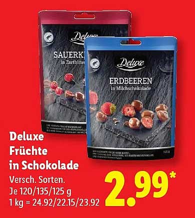 Nutze die Gelegenheit, deine Lieblingssorten der Deluxe Früchte in Schokolade hier zu entdecken und erfahre mehr über weitere Angebote im aktuellen Lidl-Prospekt. Lass dir diese süße Versuchung nicht entgehen!