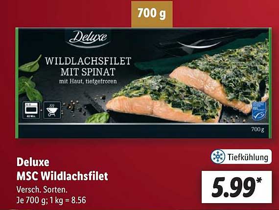 Sehen Sie sich das Deluxe Msc Wildlachsfilet Mit Spinat Angebot bei Lidl an! Dieses fantastische Angebot ist jetzt im neuesten Lidl Prospekt verfügbar. Nutzen Sie diese Chance und sparen Sie viel bei Ihrem Einkauf.