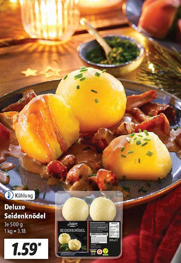 Sehen Sie sich das Deluxe Seidenknödel Angebot bei Lidl an! Dieses fantastische Angebot ist jetzt im neuesten Lidl Prospekt verfügbar. Nutzen Sie diese Chance und sparen Sie viel bei Ihrem Einkauf.