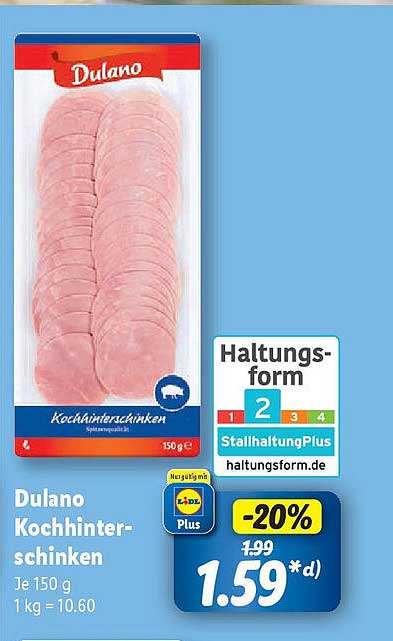 Sehen Sie sich das Dulano Kochschinken Angebot bei Lidl an! Dieses fantastische Angebot ist jetzt im neuesten Lidl Prospekt verfügbar. Nutzen Sie diese Chance und sparen Sie viel bei Ihrem Einkauf.