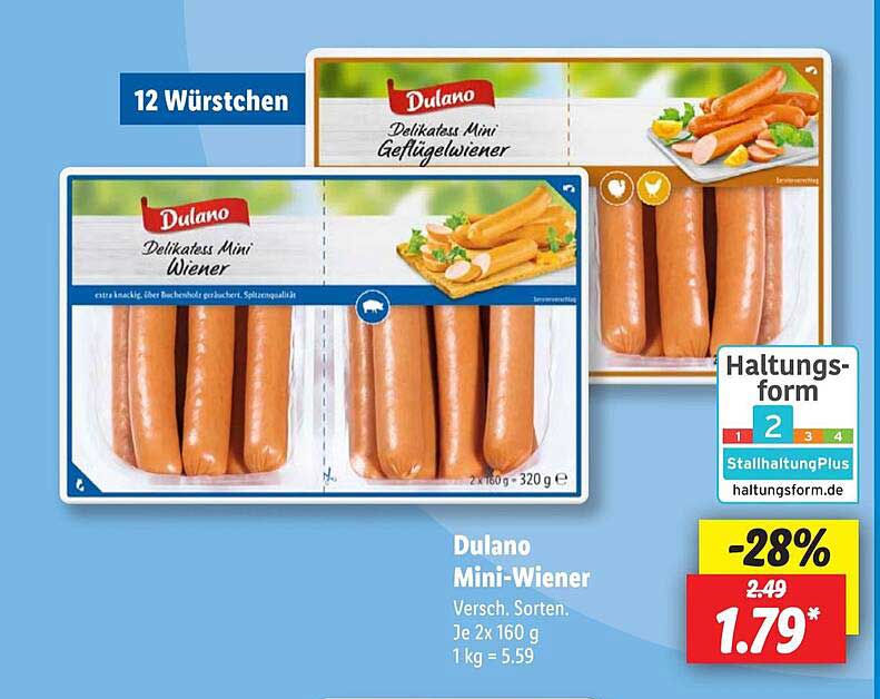Sehen Sie sich jetzt das Dulano Mini-Wiener Angebot im Lidl Prospekt an. Dieses Angebot ist gültig von 02.12.2024 bis 08.12.2024.