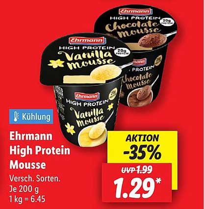 Sehen Sie sich jetzt das Ehrmann High Protein Mousse Angebot im Lidl Prospekt an. Dieses Angebot ist gültig von 22.04.2025 bis 26.04.2025.