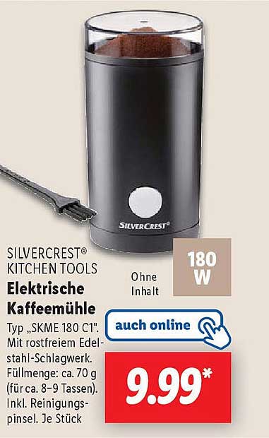 Sehen Sie sich das Elektrische Kaffeemühle Angebot bei Lidl an! Dieses fantastische Angebot ist jetzt im neuesten Lidl Prospekt verfügbar. Nutzen Sie diese Chance und sparen Sie viel bei Ihrem Einkauf.