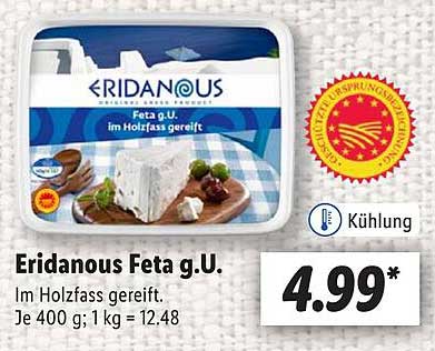 Sehen Sie sich jetzt das Eridanous Feta g.U. Angebot im Lidl Prospekt an. Dieses Angebot ist gültig von 24.02.2025 bis 02.03.2025.