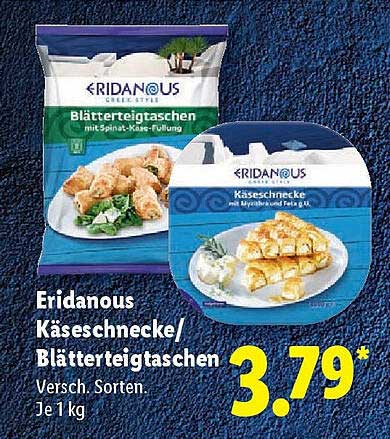 Sehen Sie sich jetzt das Eridanous Kässchnecke/Blätterteigtaschen 1 kg Angebot im Lidl Prospekt an. Dieses Angebot ist gültig von 29.09.2025 bis 04.10.2025.
