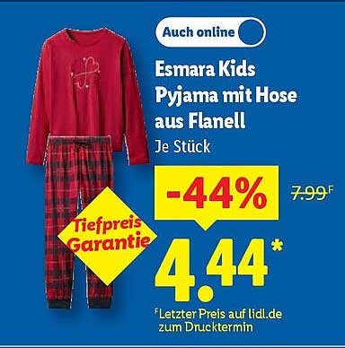 Sehen Sie sich jetzt das Esmara Kids Pyjama mit Hose aus Flanell Angebot im Lidl Prospekt an. Dieses Angebot ist gültig von 06.10.2025 bis 11.10.2025.