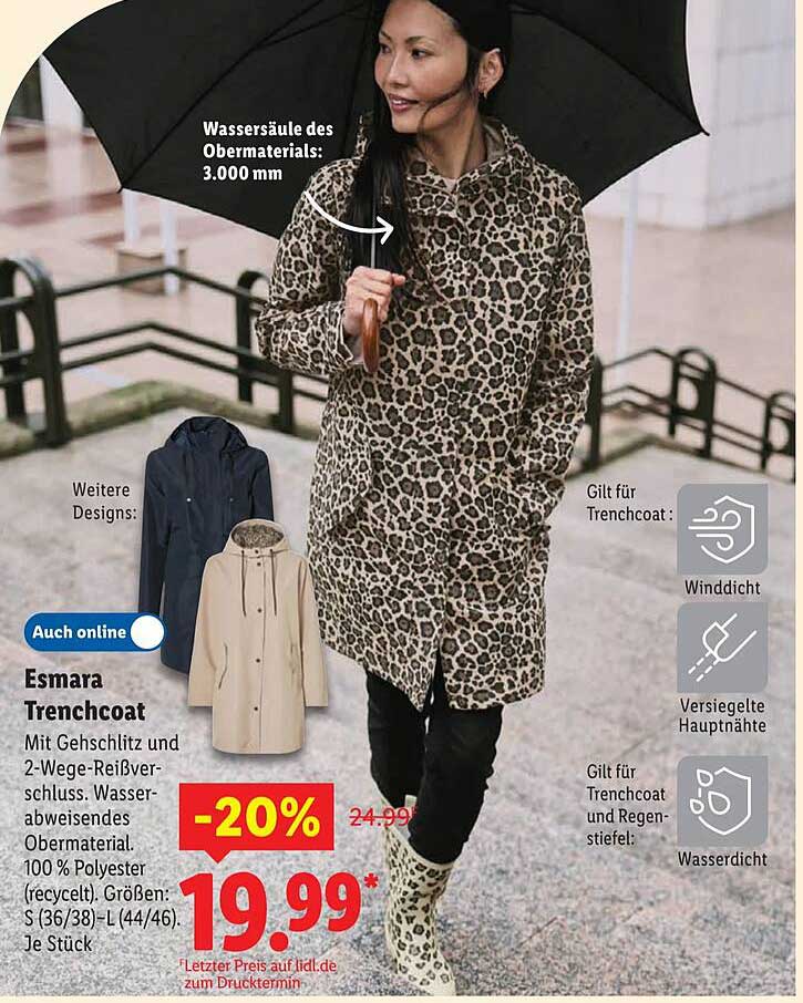 Sehen Sie sich jetzt das Esmara Trenchcoat - Modisch und Funktional Angebot im Lidl Prospekt an. Dieses Angebot ist gültig von 08.09.2025 bis 14.09.2025.