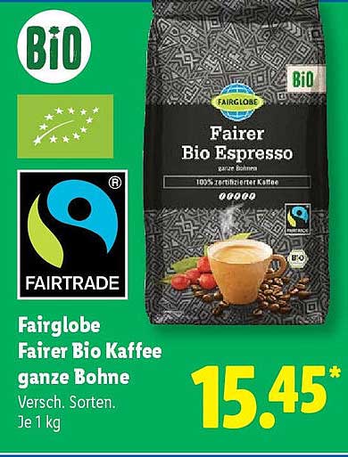 Sehen Sie sich jetzt das Fairglobe Fairer Bio Kaffee ganze Bohne Angebot im Lidl Prospekt an. Dieses Angebot ist gültig von 29.09.2025 bis 04.10.2025.