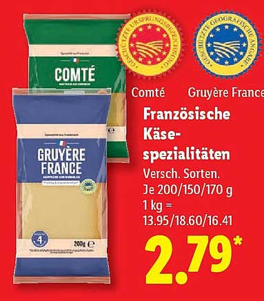 Sehen Sie sich jetzt das Französische Käsespezialitäten Comté und Gruyère France Angebot im Lidl Prospekt an. Dieses Angebot ist gültig von 08.09.2025 bis 14.09.2025.