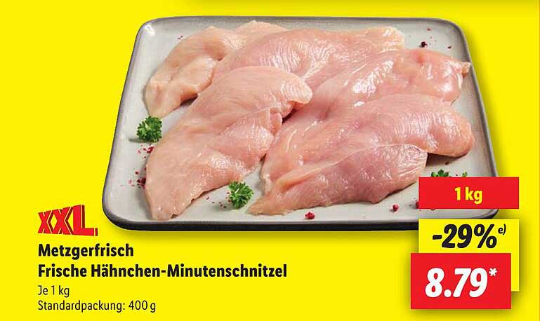 Der reguläre Preis für die Frischen Hähnchen-Minutschnitzel beträgt 8,79 €, was eine Ersparnis von 29% im Vergleich zu anderen Angeboten darstellt. Greifen Sie jetzt zu und profitieren Sie von diesem einmaligen Preis-Leistungs-Verhältnis!