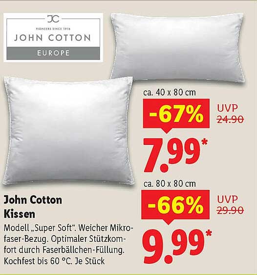 Sehen Sie sich jetzt das John Cotton Kissen – Super Soft Angebot im Lidl Prospekt an. Dieses Angebot ist gültig von 06.10.2025 bis 11.10.2025.