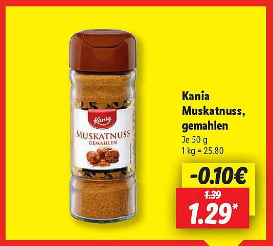 Sehen Sie sich jetzt das Kania Muskatnuss, gemahlen Angebot im Lidl Prospekt an. Dieses Angebot ist gültig von 16.06.2025 bis 21.06.2025.