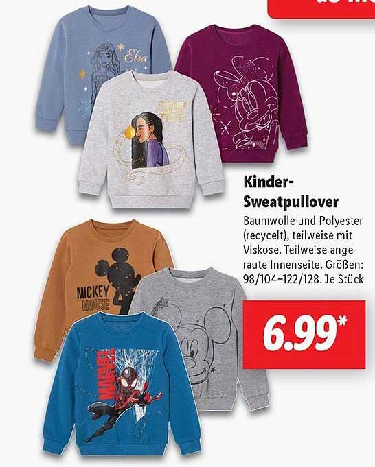 Sehen Sie sich das Kinder-Sweatpullover Angebot bei Lidl an! Dieses fantastische Angebot ist jetzt im neuesten Lidl Prospekt verfügbar. Nutzen Sie diese Chance und sparen Sie viel bei Ihrem Einkauf.