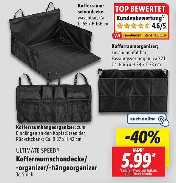 Sehen Sie sich jetzt das Kofferraumschondecke/-organizer/-hängeorganizer Angebot im Lidl Prospekt an. Dieses Angebot ist gültig von 28.10.2024 bis 02.11.2024.