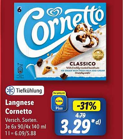 Sehen Sie sich das Langnese Cornetto Angebot bei Lidl an! Dieses fantastische Angebot ist jetzt im neuesten Lidl Prospekt verfügbar. Nutzen Sie diese Chance und sparen Sie viel bei Ihrem Einkauf.