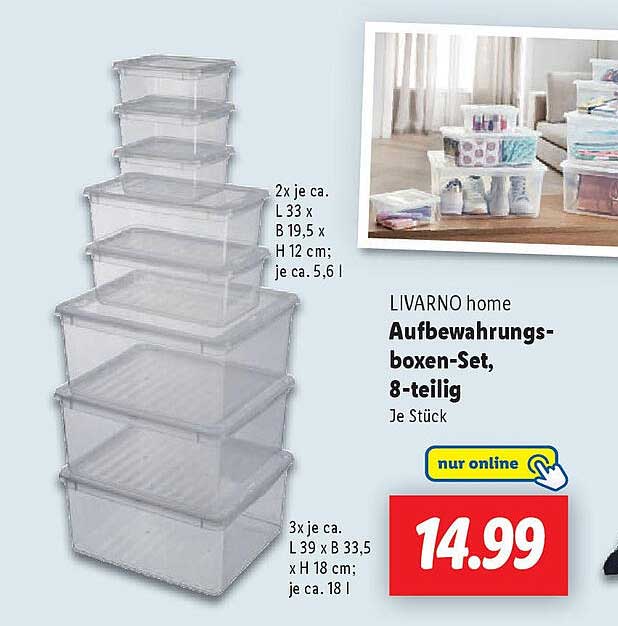 Sehen Sie sich jetzt das LIVARNO home Aufbewahrungsboxen-Set, 8-teilig Angebot im Lidl Prospekt an. Dieses Angebot ist gültig von 09.09.2024 bis 14.09.2024.