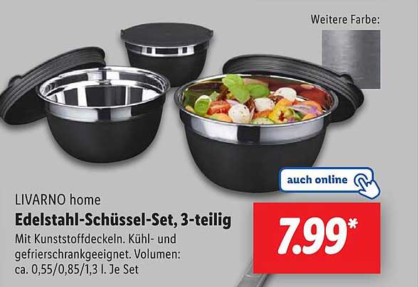 Sehen Sie sich jetzt das LIVARNO home Edelstahl-Schüssel-Set, 3-teilig Angebot im Lidl Prospekt an. Dieses Angebot ist gültig von 21.10.2024 bis 26.10.2024.