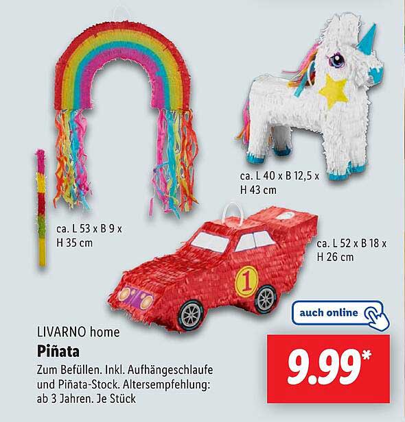 Sehen Sie sich das Livarno Home Piñata Angebot bei Lidl an! Dieses fantastische Angebot ist jetzt im neuesten Lidl Prospekt verfügbar. Nutzen Sie diese Chance und sparen Sie viel bei Ihrem Einkauf.