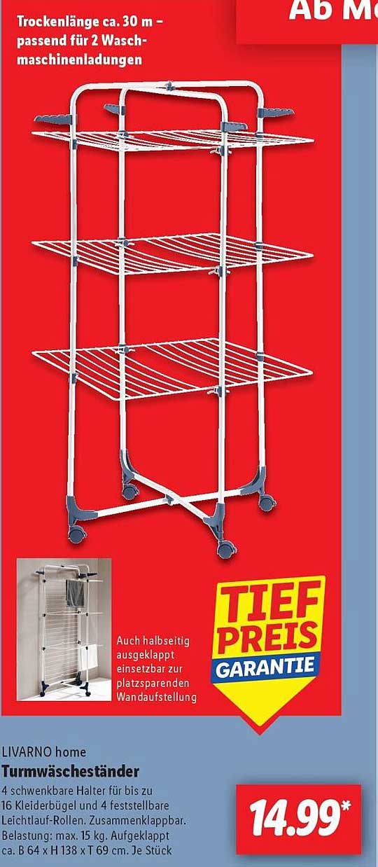 Sehen Sie sich jetzt das LIVARNO home Turmwäscheständer Angebot im Lidl Prospekt an. Dieses Angebot ist gültig von 05.05.2025 bis 10.05.2025.