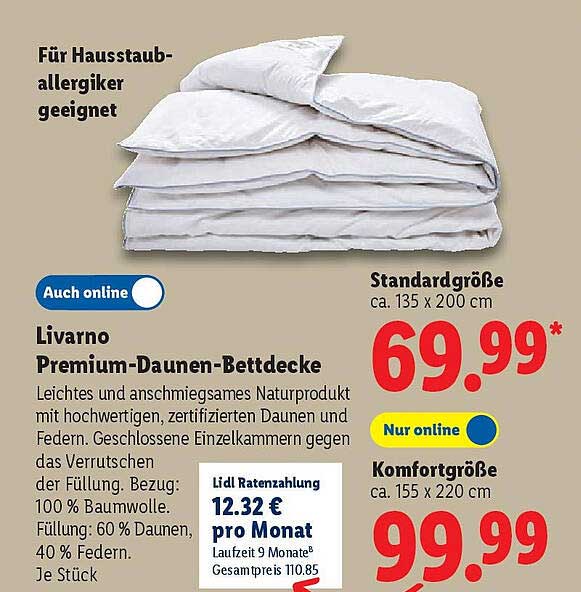 Sehen Sie sich jetzt das Livorno Premium-Daunendecke Angebot im Lidl Prospekt an. Dieses Angebot ist gültig von 27.10.2025 bis 01.11.2025.