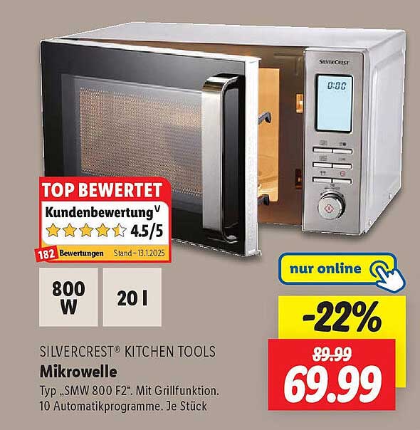 Sehen Sie sich das Mikrowelle Angebot bei Lidl an! Dieses fantastische Angebot ist jetzt im neuesten Lidl Prospekt verfügbar. Nutzen Sie diese Chance und sparen Sie viel bei Ihrem Einkauf.