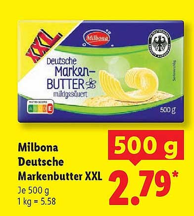 Aktuell ist die Milbona Deutsche Markenbutter für nur 2,79 € erhältlich, was eine erhebliche Ersparnis im Vergleich zum regulären Preis darstellt. Der Normalpreis liegt bei 5,58 €, daher können Sie beim Kauf gleich die Hälfte sparen! Nutzen Sie jetzt die Gelegenheit und sichern Sie sich dieses großartige Angebot!