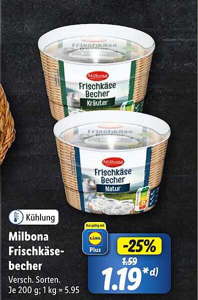 Sehen Sie sich jetzt das Milbona Frischkäse-Becher Angebot im Lidl Prospekt an. Dieses Angebot ist gültig von 17.02.2025 bis 23.02.2025.