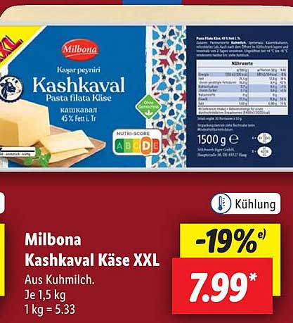 Entdecken Sie das Milbona Kashkaval Käse Xxl