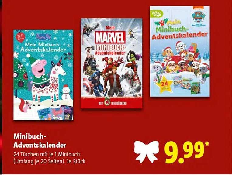 Sehen Sie sich jetzt das Minibuch-Adventskalender Angebot im Lidl Prospekt an. Dieses Angebot ist gültig von 11.10.2025 bis 27.12.2025.