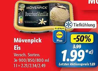 Sehen Sie sich das Mövenpick Eis Angebot bei Lidl an! Dieses fantastische Angebot ist jetzt im neuesten Lidl Prospekt verfügbar. Nutzen Sie diese Chance und sparen Sie viel bei Ihrem Einkauf.