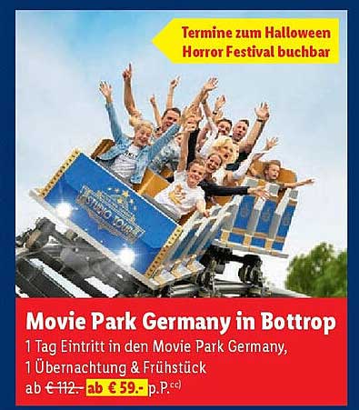 Sehen Sie sich jetzt das Movie Park Germany in Bottrop – 1 Tag Eintritt und 1 Übernachtung & Frühstück Angebot im Lidl Prospekt an. Dieses Angebot ist gültig von 22.09.2025 bis 28.09.2025.