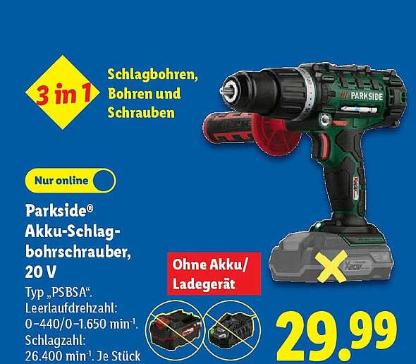 Mit einem Preis von nur 29,99 € ist der Parkside® Akku-Schlagbohrschrauber ein absolutes Schnäppchen im Vergleich zu ähnlichen Produkten auf dem Markt, die oft deutlich teurer sind. Nutzen Sie die Gelegenheit, von der hohen Qualität zu profitieren und gleichzeitig Ihren Geldbeutel zu schonen. Wenn Sie auf der Suche nach einem robusten und langlebigen Werkzeug sind, dann ist dieses Angebot genau das richtige für Sie.